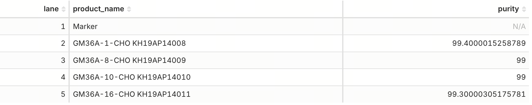 Purity table: