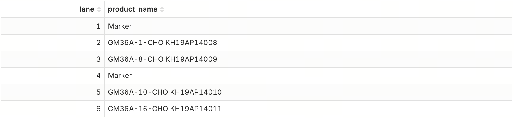 Sample table: